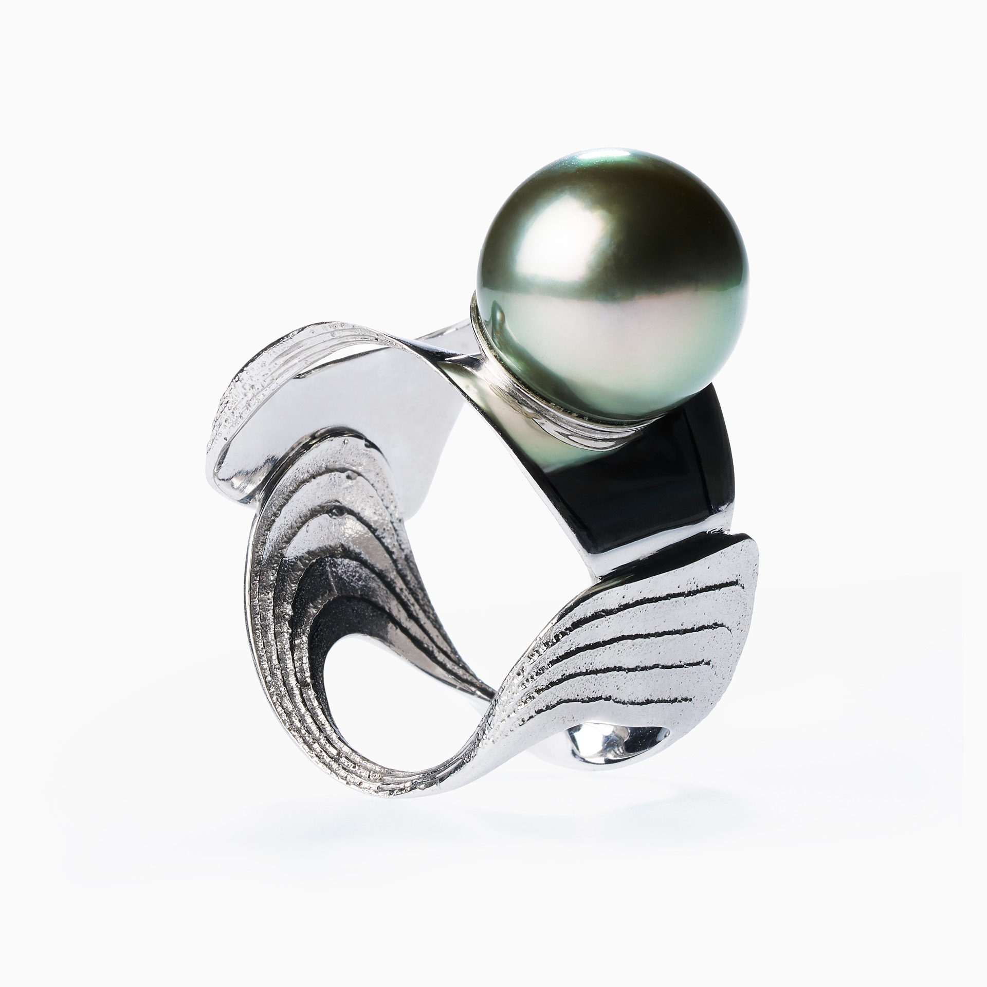 Luxusní prsten Sepiserie De Luxe z bílého zlata s tahitskou perlou.