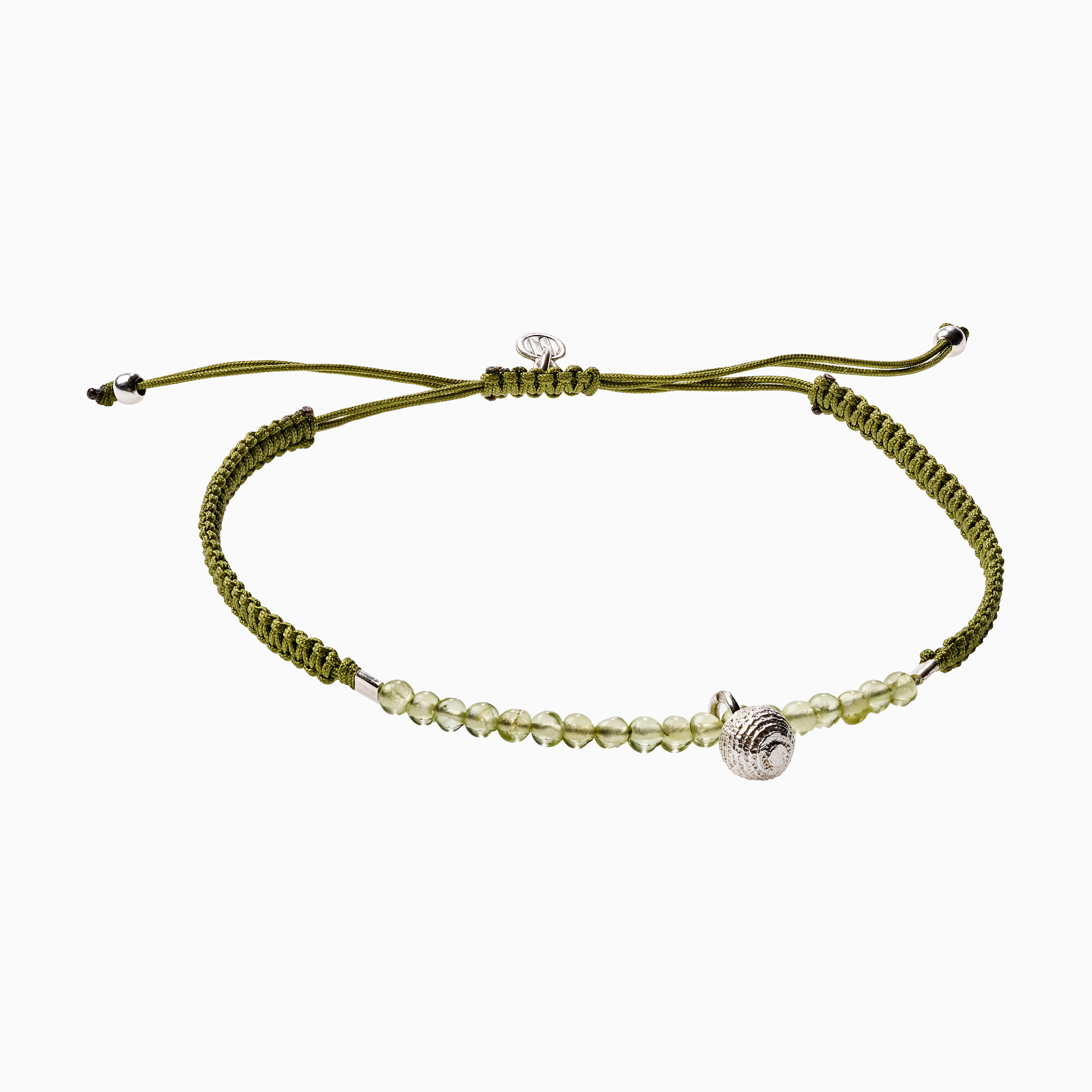 Olivín, kámen světla a rovnováhy, v sobě nese klid a sílu přírody. Jeho jemně zelený odstín připomíná olivové háje zalité podzimním sluncem. Ručně splétaná šňůrka podtrhuje přirozenou krásu minerálu a dodává náramku autentický charakter.